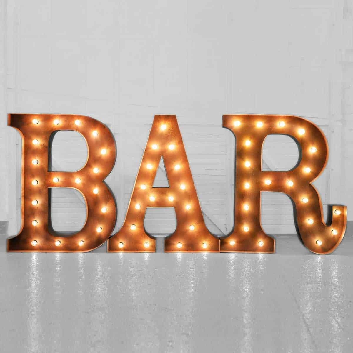 Light the way to your bar with these charming vintage BAR light up letters, made of rustic burnished metal. Ideal for parties, wedding ceremonies and corporate events.