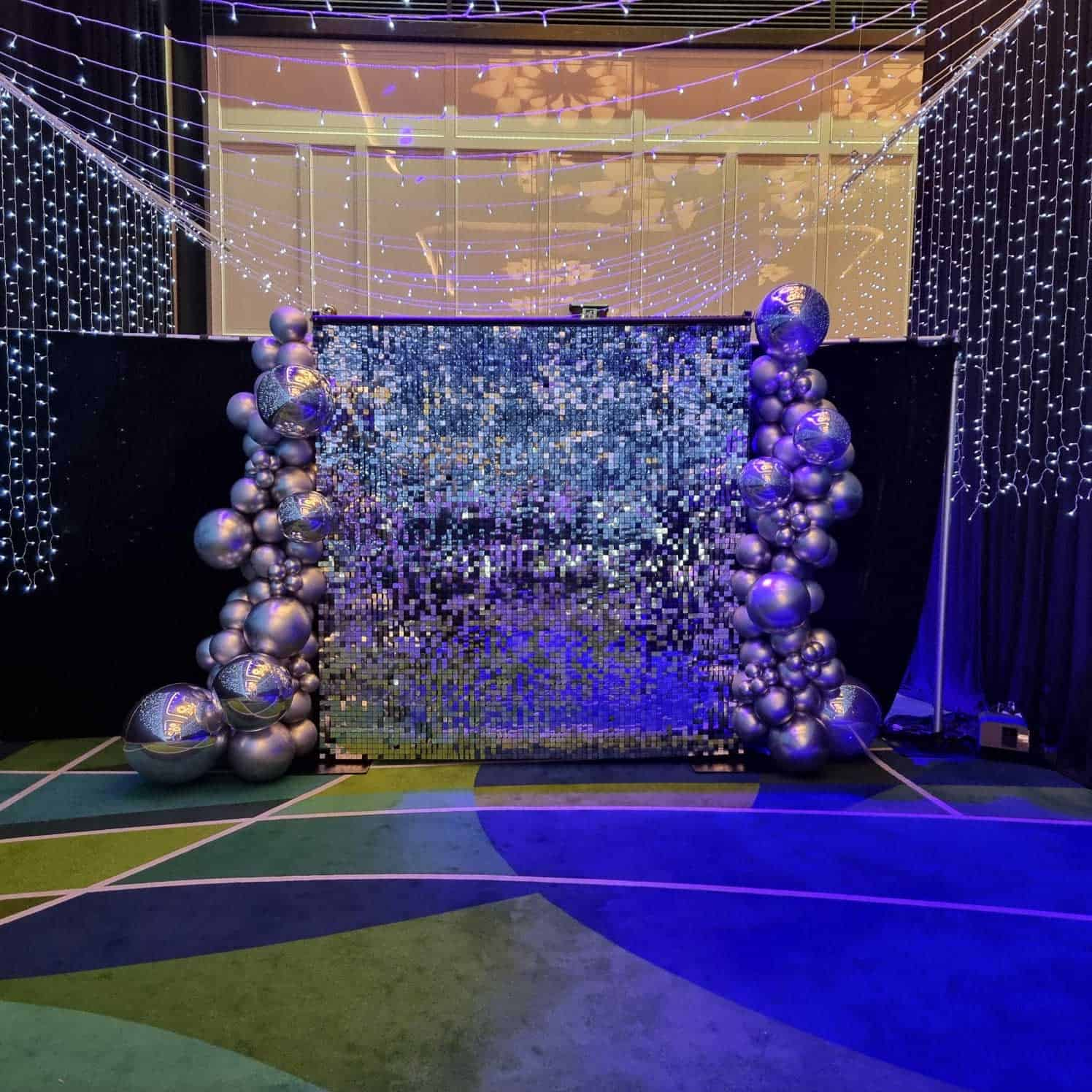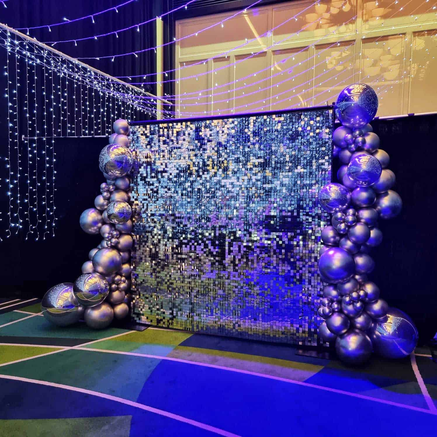 Make your event sparkle with a gorgeous shimmer wall! The glittering sequins will add a touch of magic and glamour to any event – the perfect photo backdrop. Available in Gold or Silver. Dimensions: 2.4m x 2.4m.